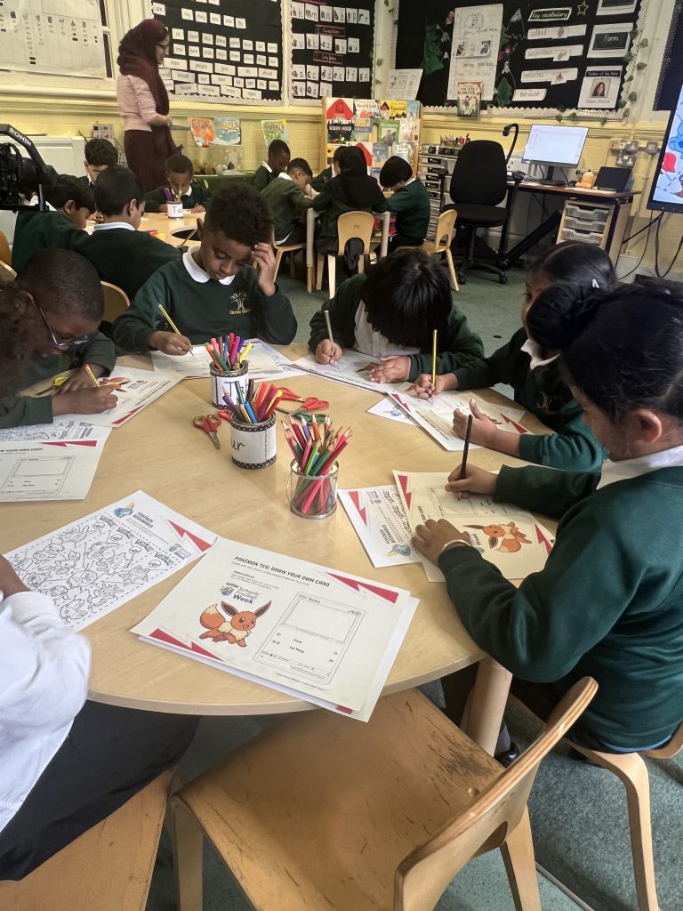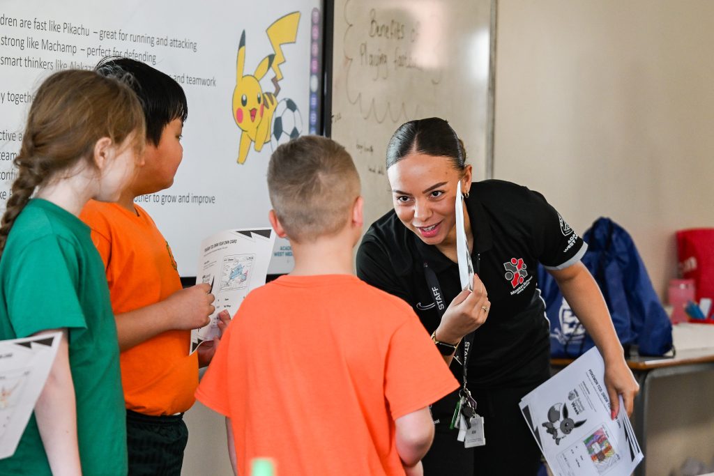 Bushbury Hill Primary School pupils were invited to experience a coaching session outside on the schools multi use games area with the elite players from the school’s PSG Academy West Midlands and sixth form rising stars. They adapted their coaching sessions to be more primary-age appropriate focusing on technique and control of the ball, rounded off with a penalty shootout. The pupils then moved into the classrooms where they had a discussion on how the Pokémon characters have different abilities, and how pupils can use their strengths to work together as a team. They created their own Pokémon trading cards and shared their own key characteristics.